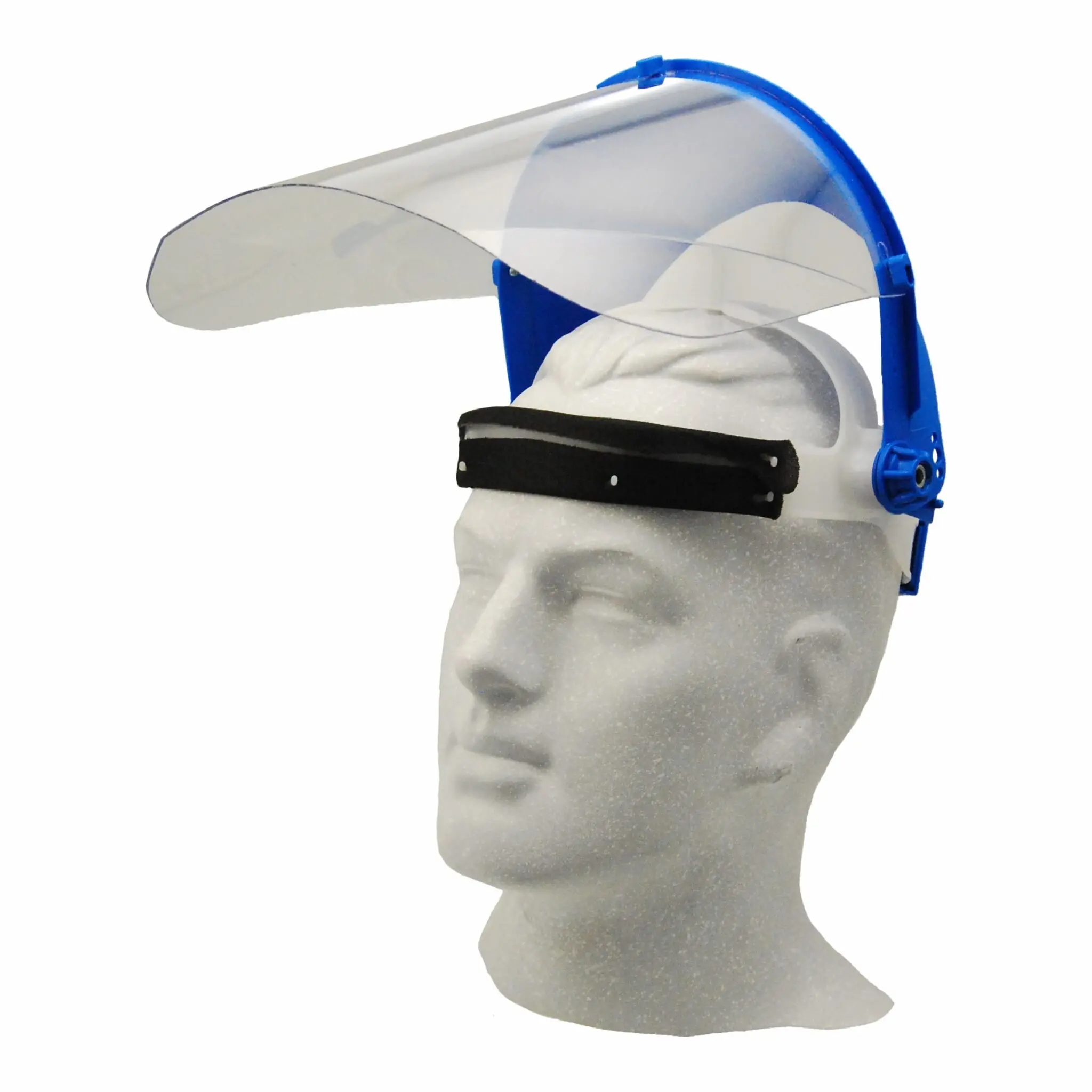 The Maxi Industrial Face Shield is built for reliable protection and comfort in demanding work environments. It features a flip-up brow guard with adjustable side knobs, a tricot cushion sweatband, and an automatic locking ratchet adjustment system for a secure fit. With a 3-point lens attachment, it accommodates both 1mm standard 305mm x 205mm and deep 305mm x 240mm polycarbonate lenses, compliant with DIN EN 166:2001 standards. Lightweight and durable, the Maxi Industrial Face Shield includes multiple adjustment points for maximum comfort and fits head sizes 50–64cm.